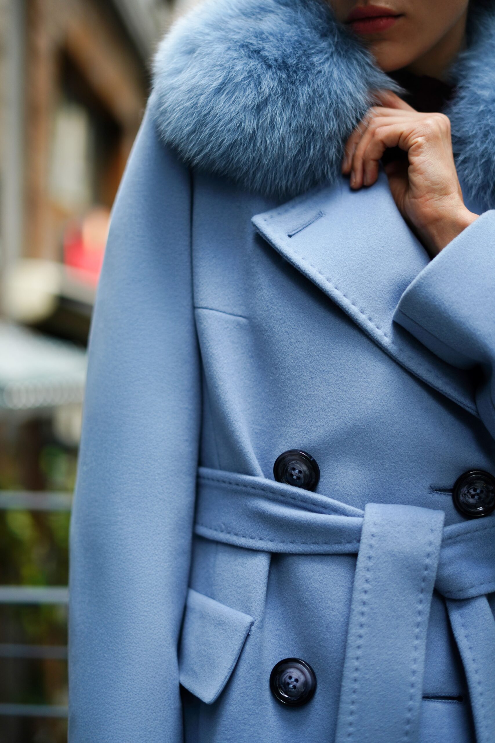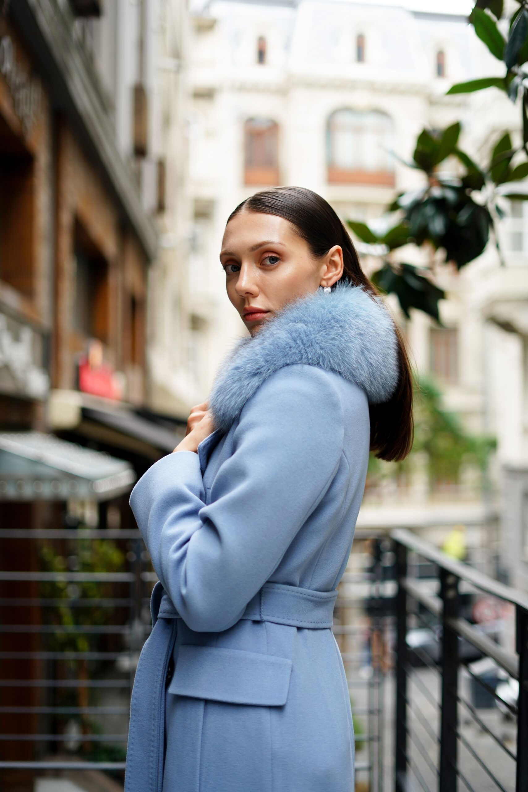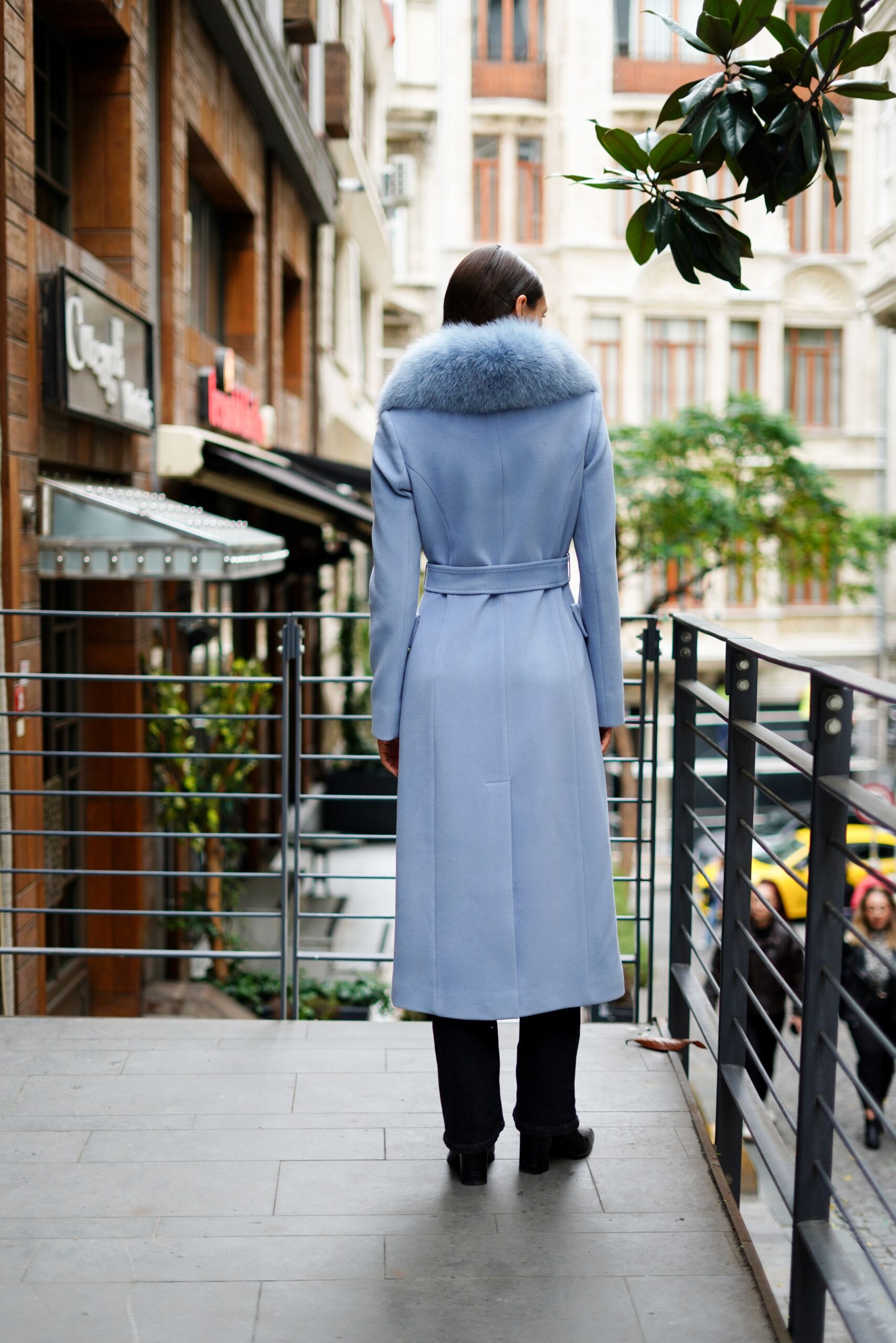 معطف طويل بحزام مصنوع من قماش الكشمير 100%. بفضل ملمسه الفاخر، وياقته من الفرو الطبيعي، ودرجة لونه الأزرق الثلجي الراقية، إنه القطعة الأبرز والأكثر تميزاً في الشتاء. بطانته الحريرية توفر راحة إضافية، وقصته الأنيقة تكمل جميع إطلالاتك.