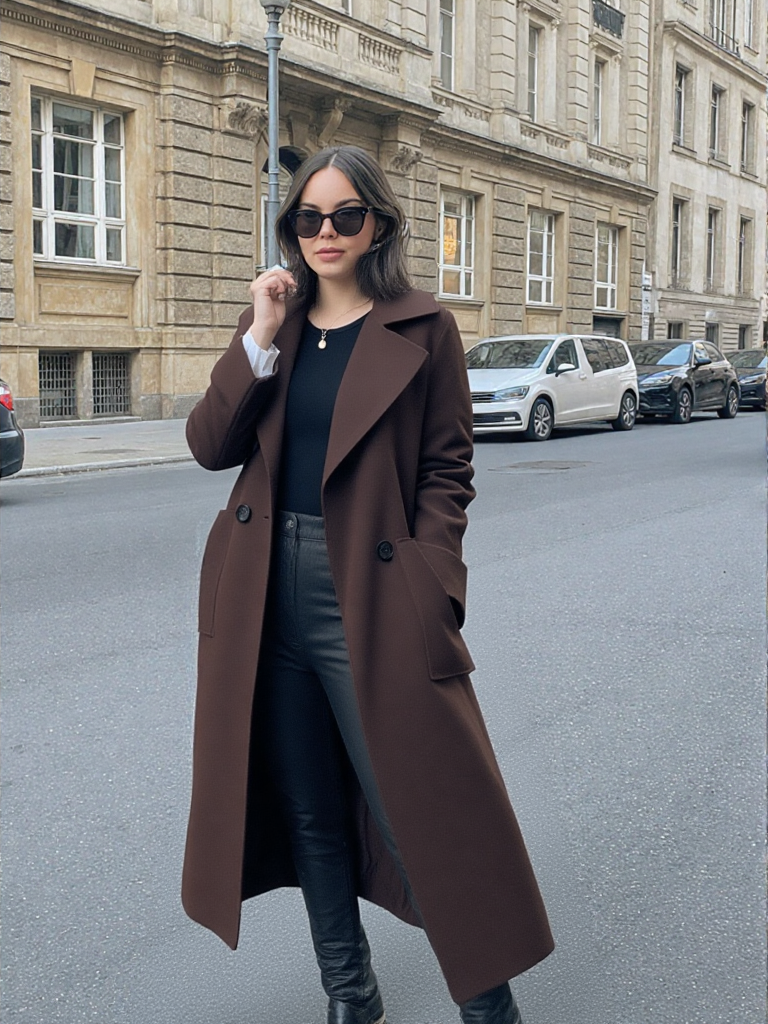 %100 kaşmir kumaştan üretilmiş uzun kuşaklı kaban. Leylak tonuyla yumuşak, zarif ve feminen bir duruş sunar. İpek astarı ve rahat kesimiyle kış boyunca konfor ve şıklığı bir arada sağlar. Günlük şehir kombinlerinden özel günlere kadar her stile uyumlu.
